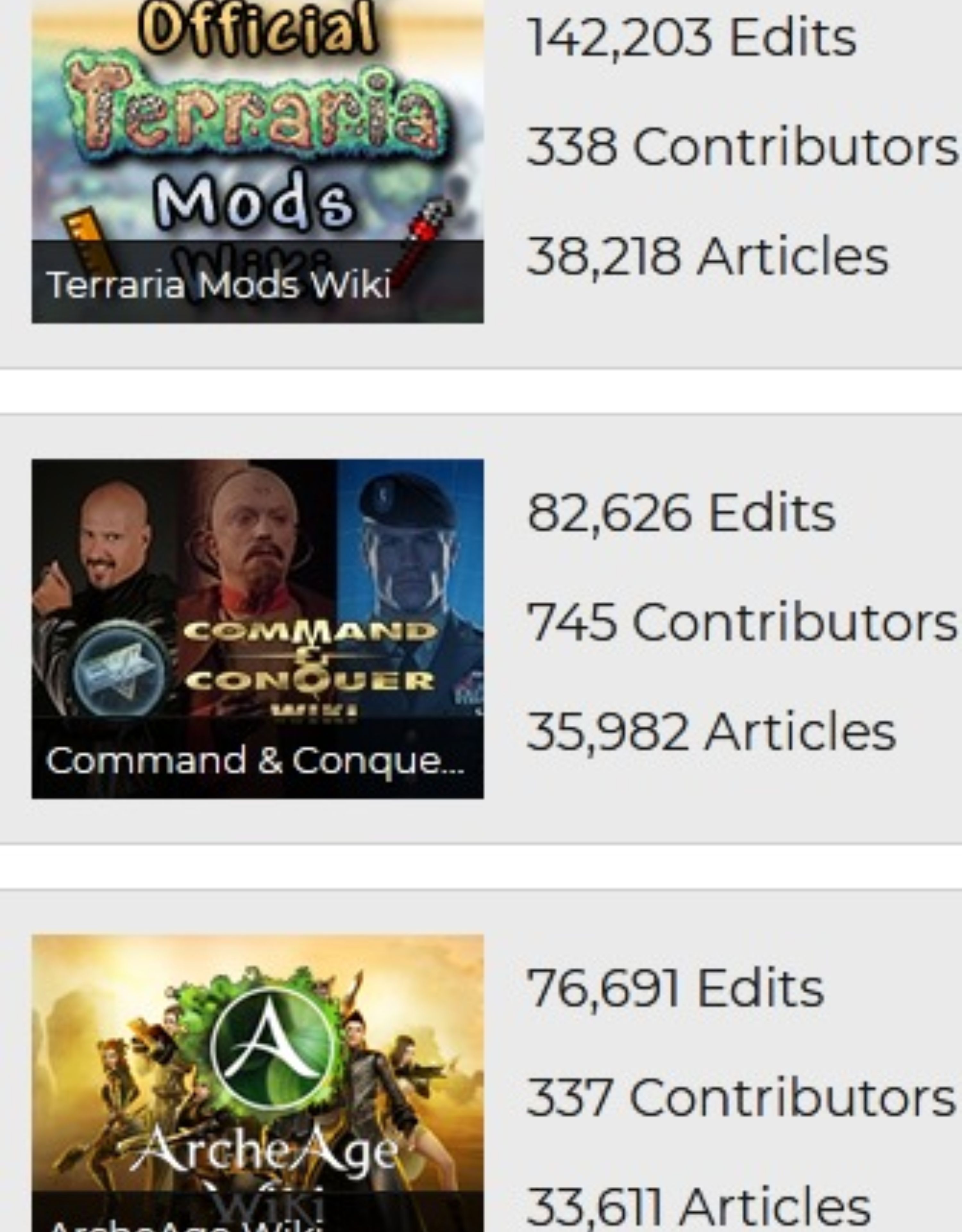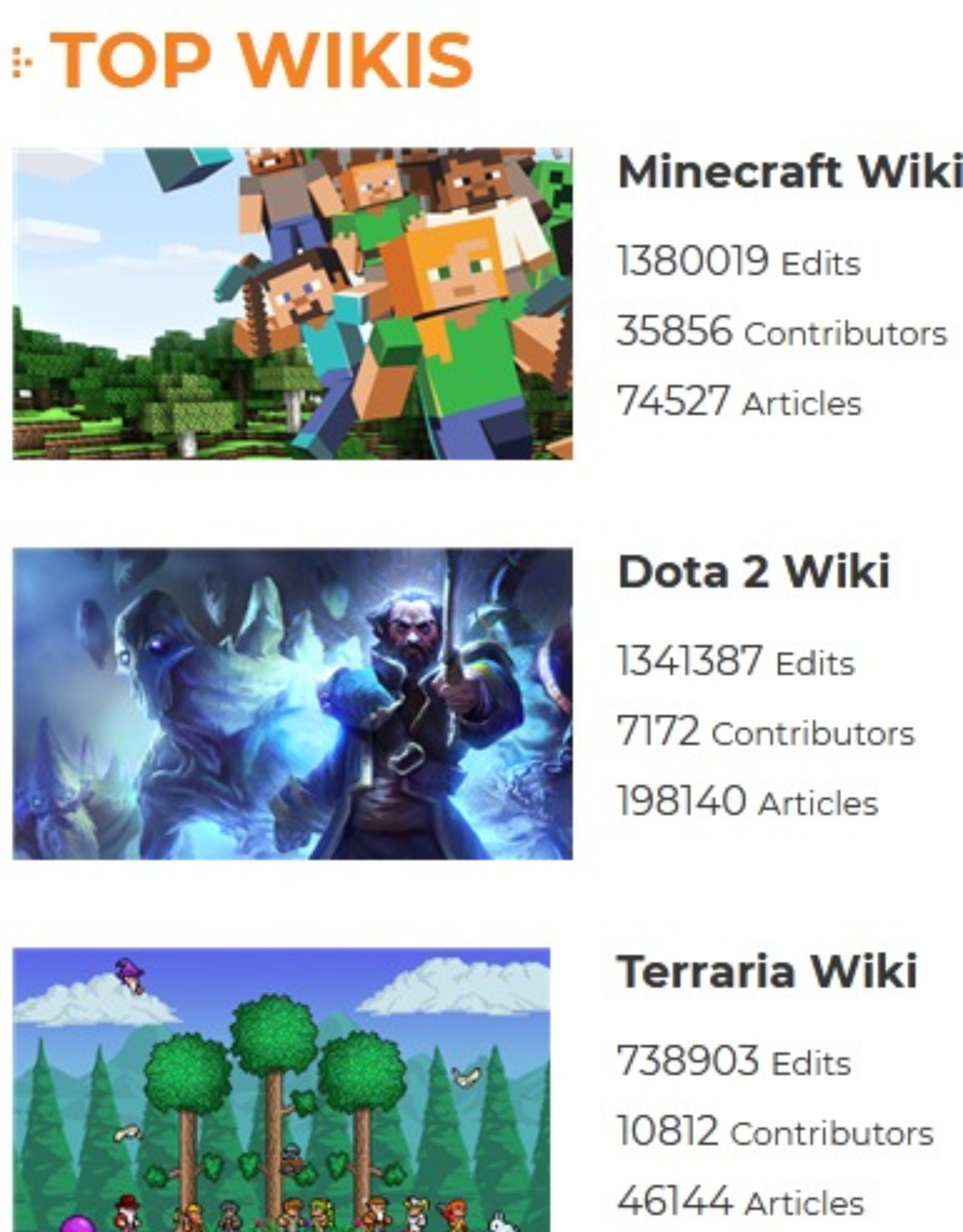 Gamepedia is the largest video game wiki platform on the web, featuring thousands of community-driven wiki projects. Owned and operated by FANDOM, Gamepedia is home to everything from indie title wikis to some of the best-known gaming wikis such as the Official Minecraft Wiki, Leaguepedia, and the Official ARK Wiki.